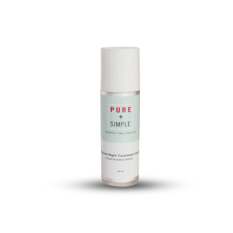 Apply nightly to skin that has been cleansed, toned (and serumed), avoiding eyes. Ultra dry or sensitive skin can follow with one of Pure + Simple’s therapeutic face oils. Use daily sun protection with any retinol use.